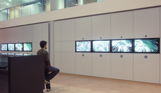 A website, 32 little TFT monitors and a barcode reader were connected to form a system where users can upload their favorite photos, and next time they enter the installation the system shows their collection on the monitors.