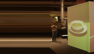 A stereoscopic interactive exhibit playing with the concept of a gambling machine.